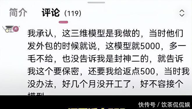 我承认,这三维模子是我作念的,其时他们发外包的时期就说,这模子就5000,多一毛不给,也没告诉我是封神二的,就告诉我这个要躲避,还要我给返点500,其时我没主义,好几个月没开工了,好破裂接个模子!