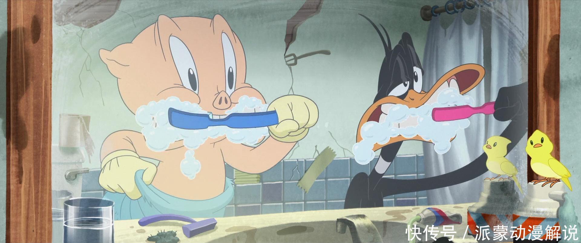 在3D动画横行的今天,《乐一通大电影:地球爆炸之日》毅然遴选以传统手绘2D格调纪念,这几乎即是对old school动画的一次深情广告,一场欢畅时期的深度巡礼。别看这2D画风笔画好像,可每一根线条皆细巧灵动。从达菲鸭夸张的肢体行为,到猪小弟灵动的感情变化,每一帧皆像是艺术家经心雕塑的艺术品,既保留了原版的格调,又在大银幕上呈现出了愈加天果真视觉后果。