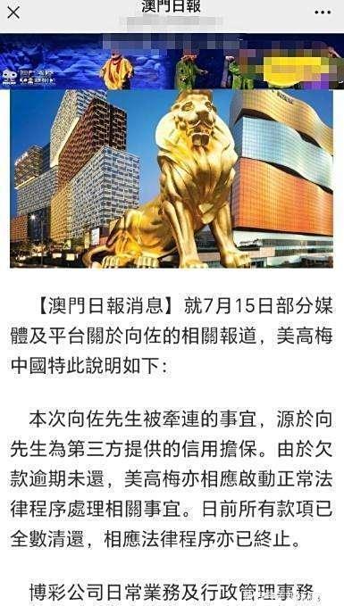 好意思高梅那儿发了声明,说债务不是向佐的。