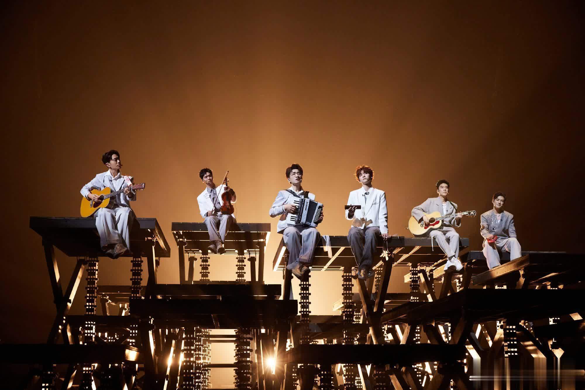 6.王铮亮、林依轮、严屹宽、蔡旻佑、韦礼安、高卿尘《想着你》。选曲到手。服装搭配的好。