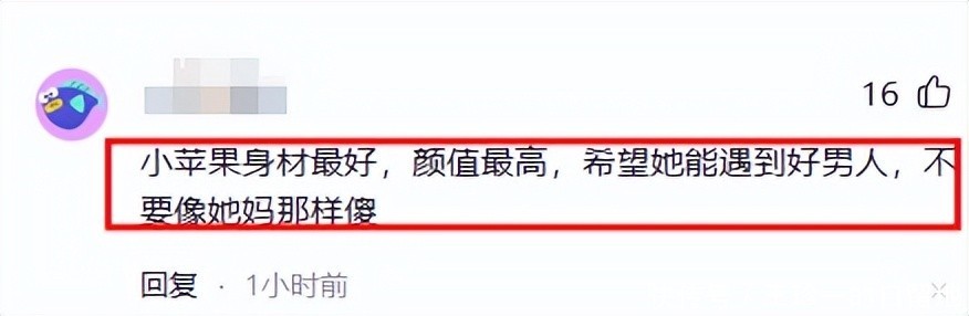 也有网友为小苹果感到回归,怕她重蹈葛荟婕的覆辙,直言“小苹果躯壳最佳,颜值最高,但愿她能遇到好男东说念主,不要像她妈那样傻。”