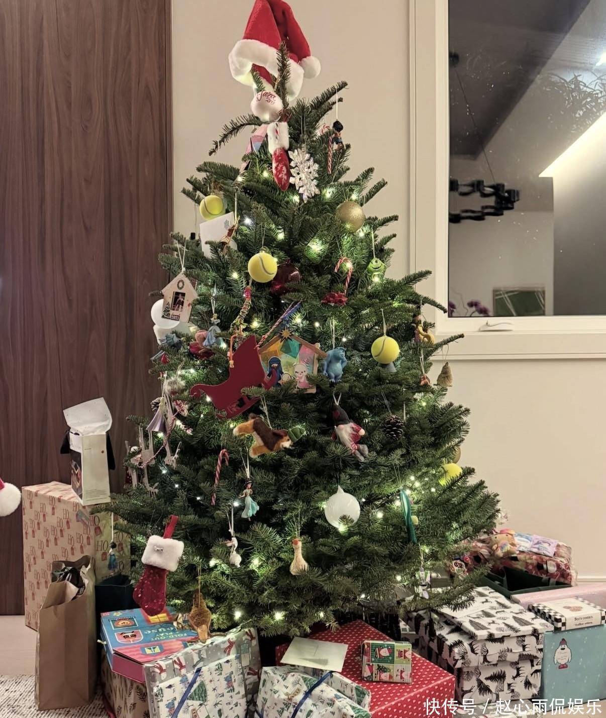 圣诞树上挂满铃铛、手套和网球庇荫 —— 那是她和 Mathew 的共同青睐。树下堆满礼物盒,三代同堂的生存气味扑面而来,Mathew 的父亲早已搬来同住,一家东谈主和乐融融。
