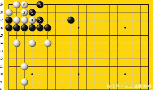 面临白棋2的拐,黑棋3要是一线虎呢?条件去扑劫呢?白棋4会连接三线冲,黑棋5会连接三线挡,来阻滞白棋,白棋6会在一线团,占据眼位作念眼,下到这个进度,黑棋诚然得了先手,可是比第一种行棋的念念路要少一目棋!