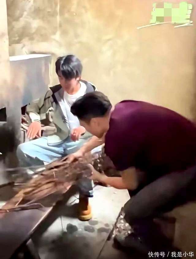从谢霆锋略显生僻的拿树枝的姿势来看,他似乎并每每常使用这种灶具。