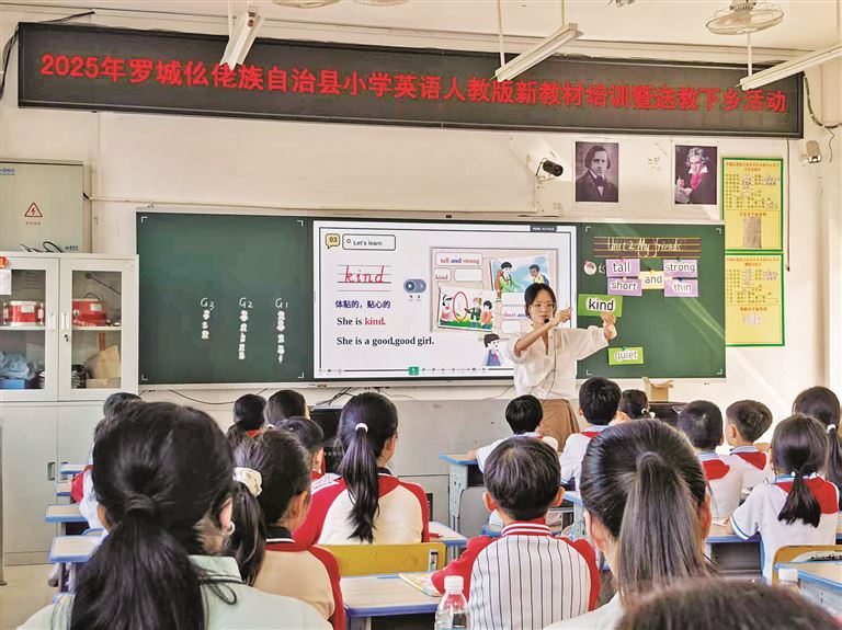 罗城讯 为推动县域小学英语教师平衡发展,日前,罗城仫佬族自治县教师局开展广西要点成立特级教师和名师责任坊暨2025年罗城仫佬族自治县小学英语东说念主教版新讲义培训、送教下乡活动,为下层学校注入优质教师动能。来自全县11个州里的百余名专职英语教师蚁合小长安镇中心小学,开启了以训促研、以训促学之旅。