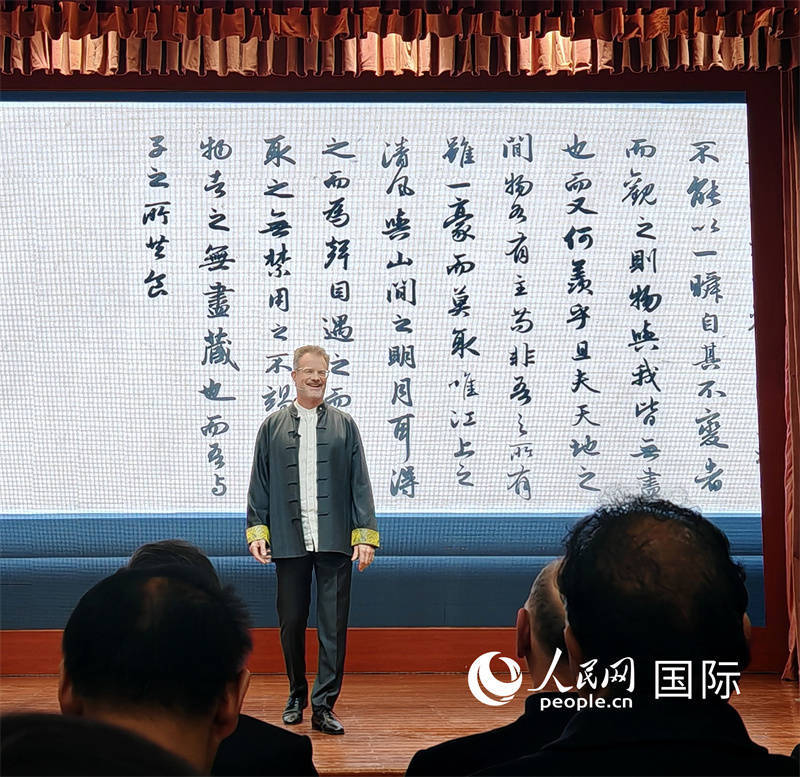 加拿大文化学者大山诵读《赤壁赋》。东谈主民网记者 李琰摄