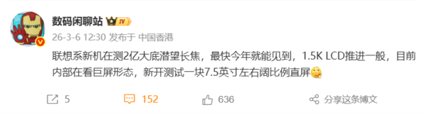 【CNMO科技音讯】3月6日,博主“数码谈天站”爆料称,联思旗下moto品牌正在测试一款全新的机型。据表露,该机瞻望将搭载2亿像素大底潜望式长焦镜头,并配备一块7.5英寸傍边的阔比例直屏,最快有望在本年内与耗尽者碰头。现在,对于这款新机的具体型号、齐全设立及上市时分尚未有更多信息流出。