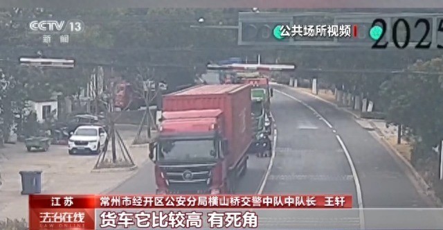 常州经开区公本分局横山桥交警中队中队长 王轩:今日老年东说念主乘坐轮椅念念过马路,但是因为年级已高,关于路面交通情况也不是太明晰。在过马路的情况之下,货车比拟高有死角,这个轮椅赶巧从货车的车头前边绕畴昔了,货车驾驶员没能实时发现这个轮椅。