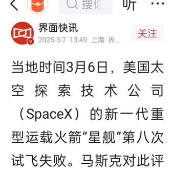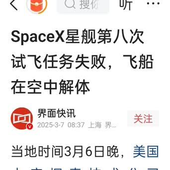 靠近星舰第八次试飞第八分钟解体,马斯克很漠然,他说准备4-6周后再次准备一艘新飞船检修。